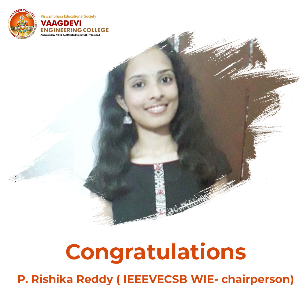 Congratulations P. Rishika Reddy( IEEEVECSB WIE- chairperson) for being selected as Student Network Representative(SNR) for IEEE Hyderabad Section from IEEE Vaagdevi Engineering College Student Branch.