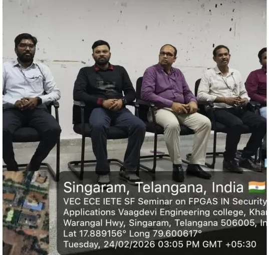 This seminar was conducted as a Student Awareness Program by the Department of ECE, Vaagdevi Engineering College, Bollikunta, Warangal on 24th February 2026 at the E120 Kaveri Auditorium.