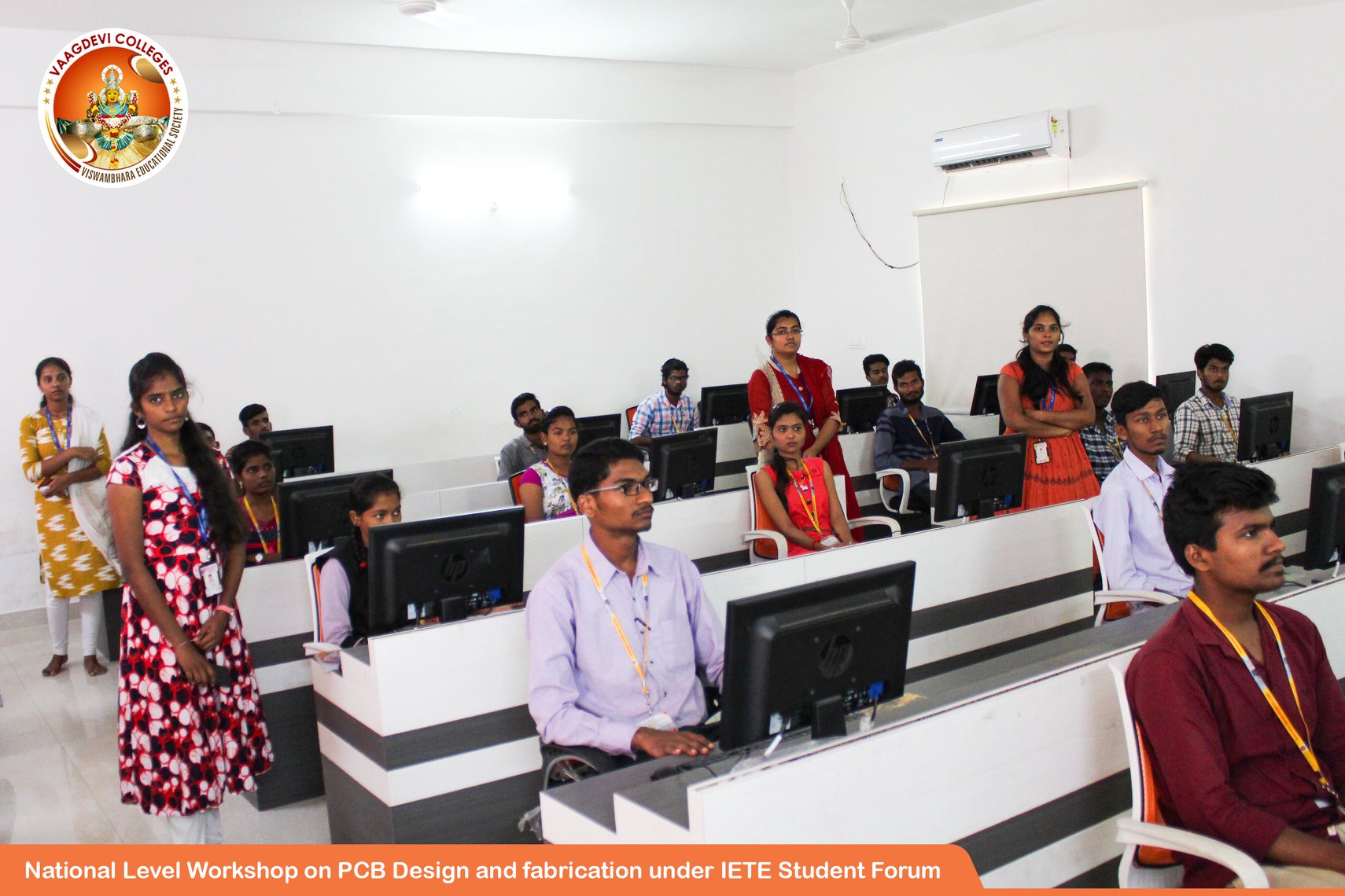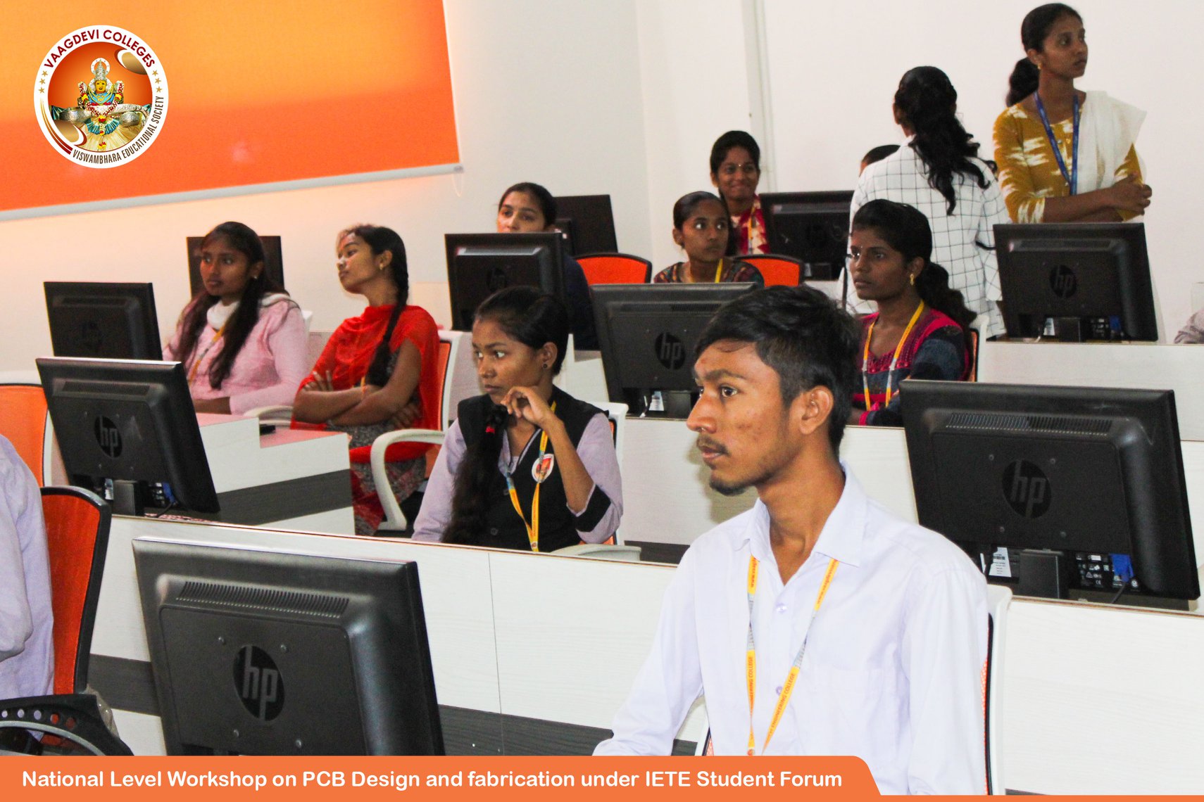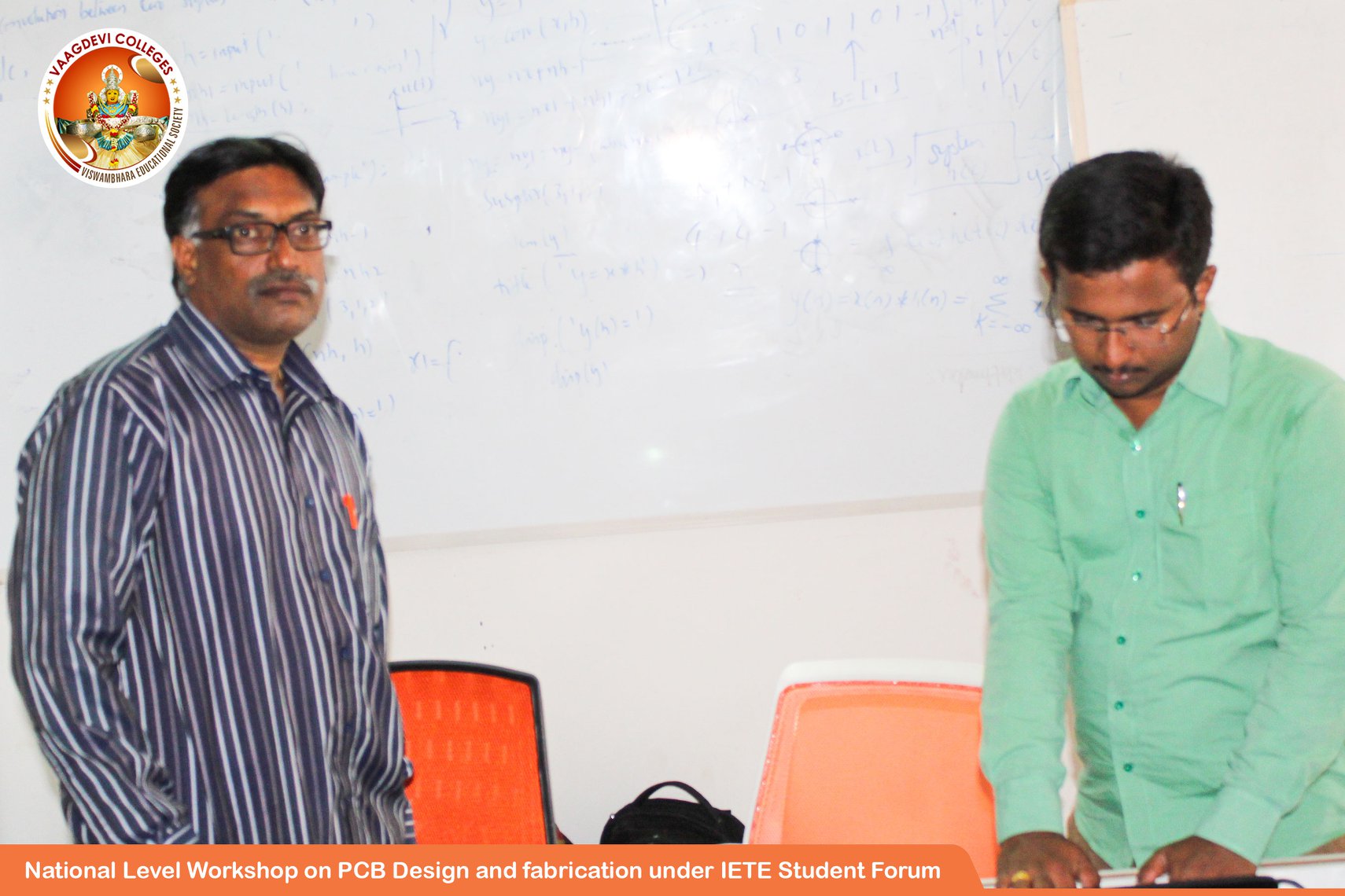 Aspiring electronics and communication engineer of 2nd year were made to conceptually and practically be aware of designing the schematic layout of the circuit and etching through a workshop on PCB Design and fabrication, organised by ECE department of VEC with the help of the convenor, Prof. Dr K.Kumar and coordinator, Asst. Prof Mr D.Ranjith