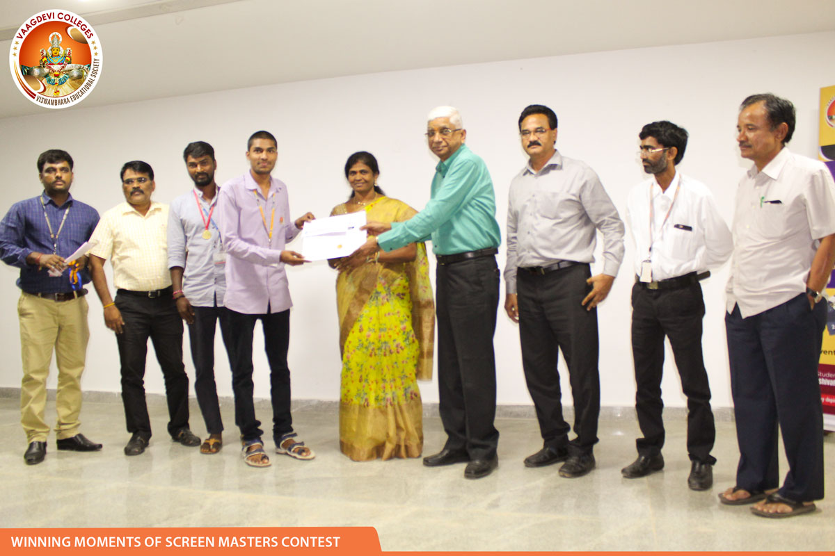 Moments of victory captured as 1st, 2nd & 3rd prize winners were awarded prize certificates for the screen masters contest organised by ECE dept. of VEC.